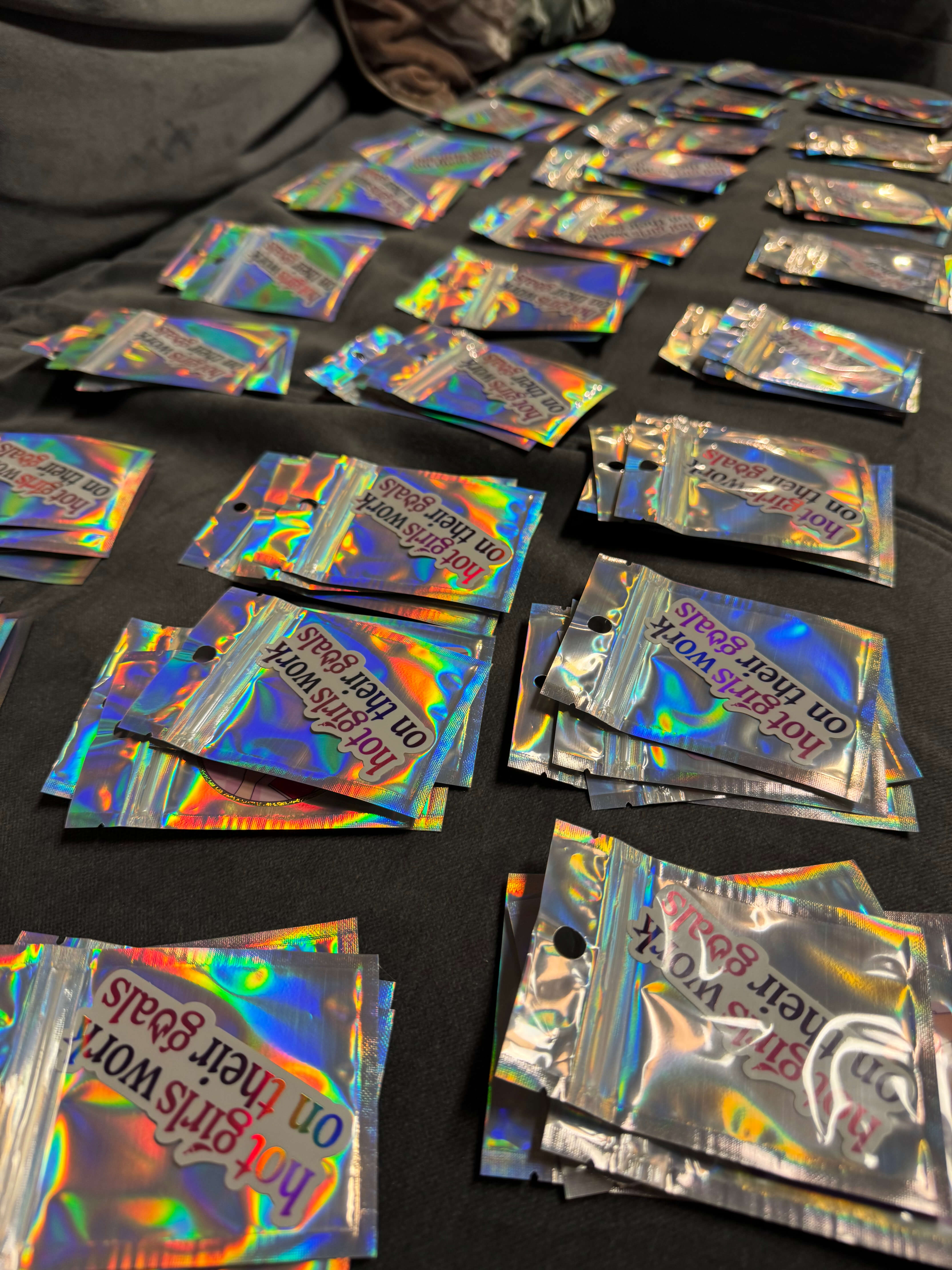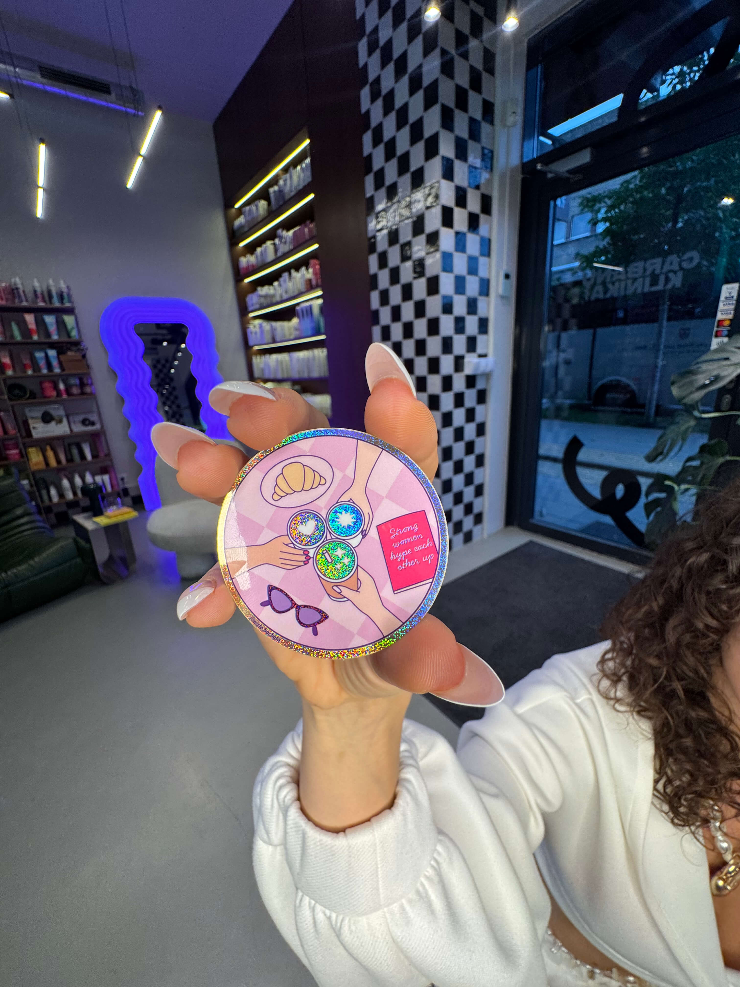🩷 4 waterproof skirtingai žibantys ir skirtingo dydžio lipdukai, kurti su dizainere, atspindintys mano vertybes ir siekius
